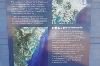 We have fallen in love with Newcastle Beach and the Ocean Baths. From our vantage point in front of the beach we took on missing sections of the Great North Walk. Rather than the often treacherous terrain we experienced during the earlier part of the walk, these treks were sedate. We replaced hiking boots with running shoes and discarded the hiking poles. We still walked 10-11 miles each day.