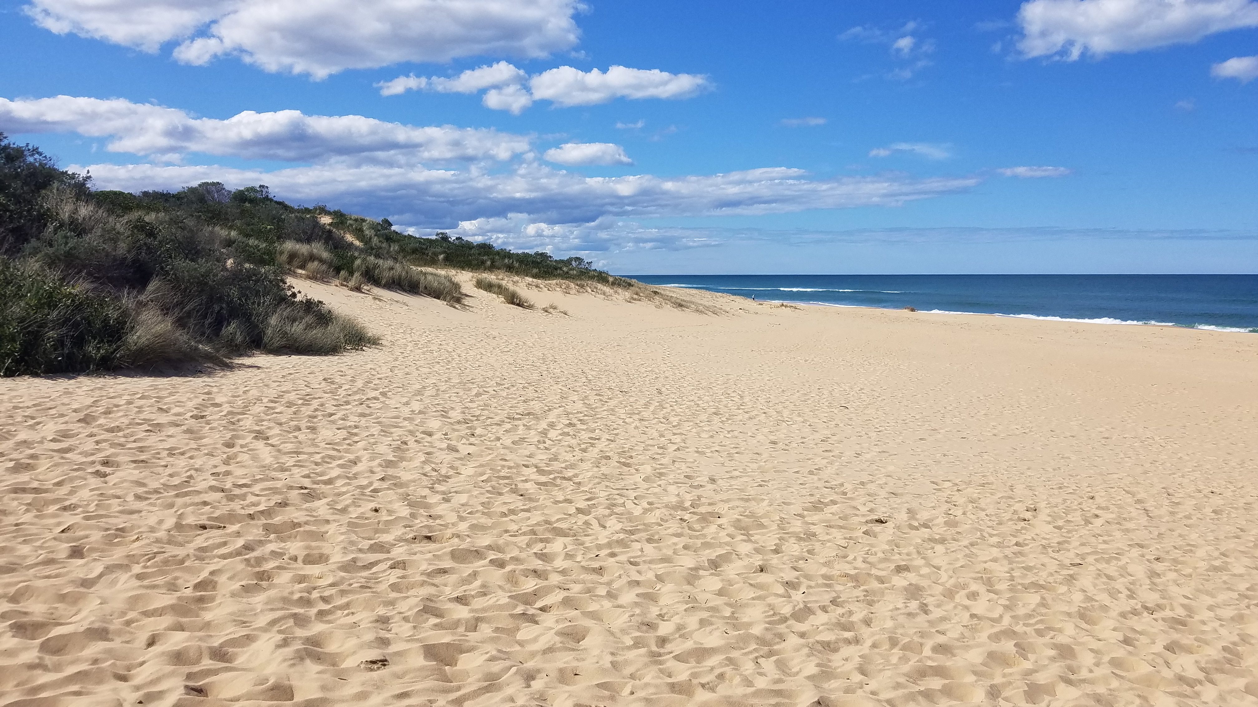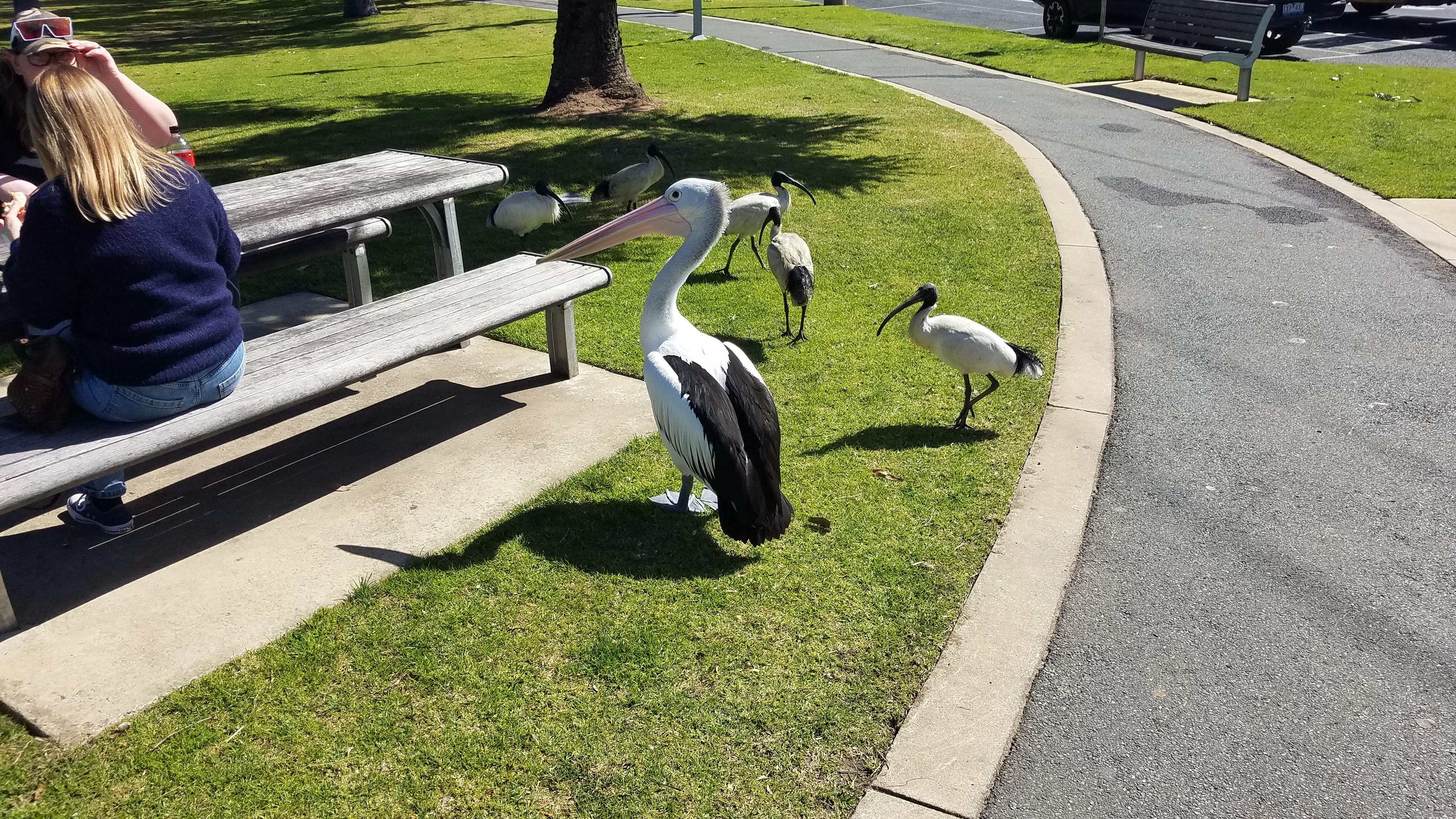It was time to drive south to Phillips Island, about 700 miles away. Pat did the driving and Destyni kept her eye out for kangaroos. This highway (which does allow cyclists) was two lanes only in most places with no dividing barriers and the road wiggled up and down. By 7 p.m Pat was fried so we found lodging at a pub packed with serious dart players all On Tuesday, we scrapped frost from the windshield and headed farther south, stopping once at Lakes Entrance, which has a barrier beach that goes for miles without any development.