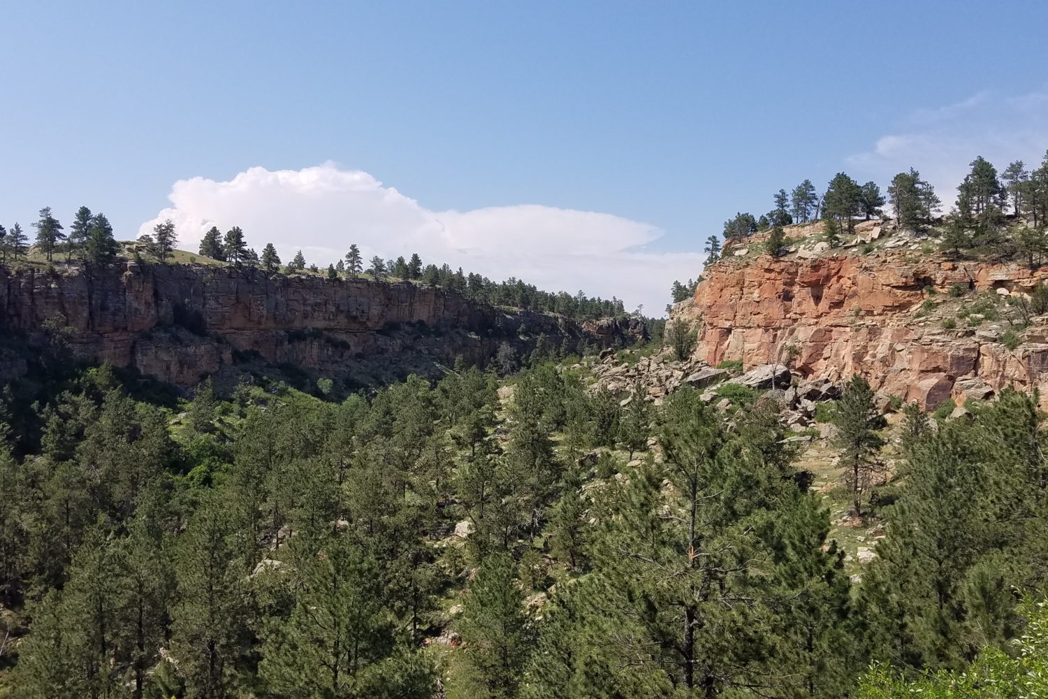 Over the past several days Pat and I have found many nuggets of gold in these here Black Hills. First, while patiently waiting for our bicycles to arrive from Missoula, we camped for three nights in the town’s campground next to a babbling brook, an historic fish hatchery and the town park, equipped with six pickle ball courts, a polywood playground and an open-air amphitheater. We met other cyclists and we had a beer with Pete and his golden retriever, G