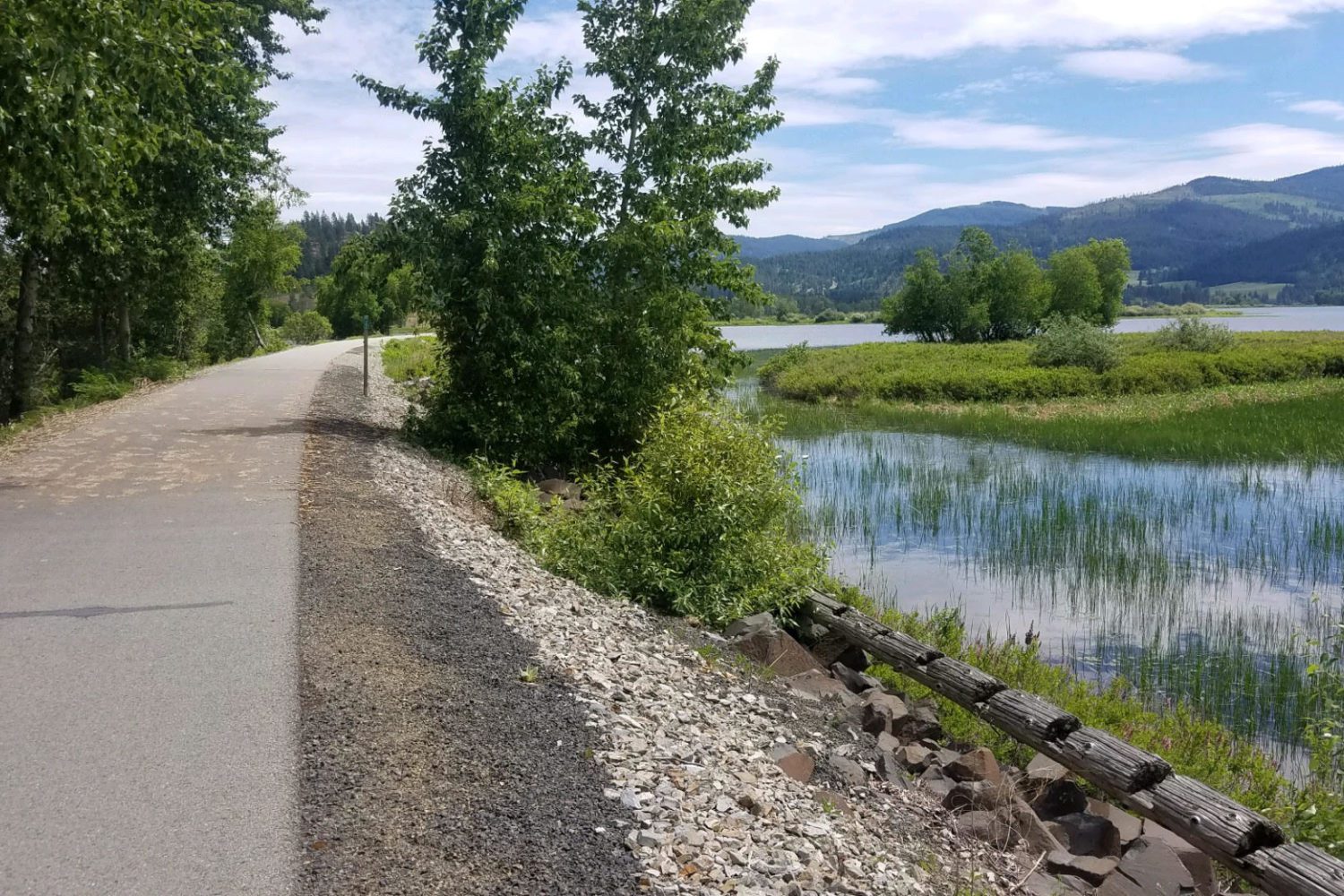 After a warm night at Heyburn State Park, we were back on the Trail of the Coeur d’Alenes in the morning. This trail gets our blue ribbon of excellence because of its beauty, its pavement and because it winds across and next to multiple waterways. It crosses most of Idaho’s Panhandle, travels through the Coeur d’ Alene Indian Reservation and the Silver Valley and crosses a 3,100-foot bridge trestle on the Coeur d’Alene Lake that is also specifically designed for individuals in wheelchairs. Pat, the engineer, fell in love with the bridge’s design